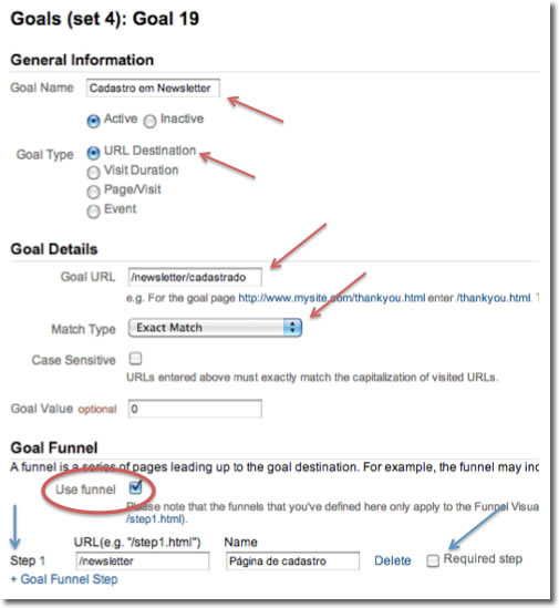 - Goal Name: contém o nome da meta, que será também utilizada na representação visual do funil, então, seja descritivo;